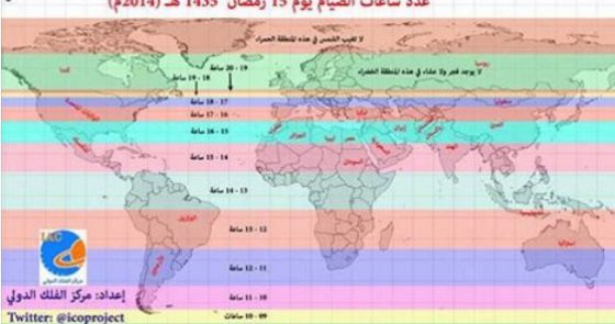 Međunarodni astronomski centar prije početka ramazana objavio je detaljnu mapu koja pojašnjava dužinu posta u različitim krajevima svijeta u toku ovogodišnjeg mjeseca posta napominjući kako će vjernici u pojedinim dijelovima svijeta postiti skoro dvostruko duže od vjernika u nekim drugim krajevima svijeta.