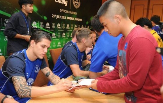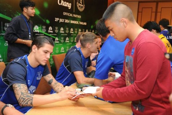 Fudbaleri Evertona jučer su se družili sa navijačima u Bangkoku družili sa navijačima, a Bešić je osim poziranja prilikom fotografisanja potpisivao i autograme.