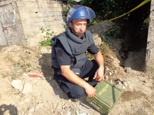 Radeći na uređelju zemljišta pored garaže, u samom centru Hadžića, u neposrednoj blizini policijske stanice Hadžići Mirza Mehmedić i Veledin Hujić pronašli su ručnu bombu.