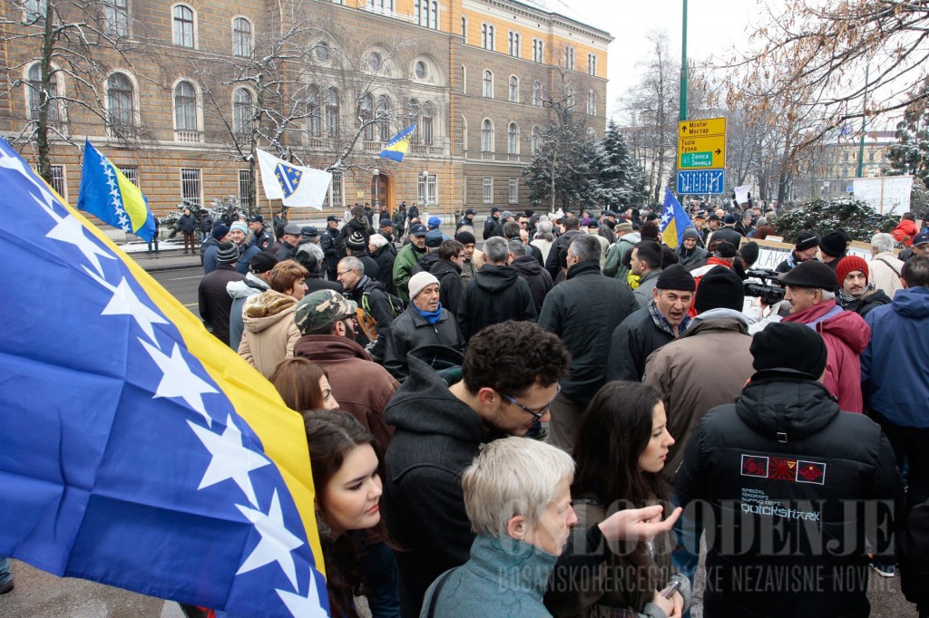 Više stotina građana Sarajeva danas je na platou preko puta zgrade Predsjedništva Bosne i Hercegovine obilježilo godišnjicu građanskih protesta, održanih 7. februara 2014. godine.