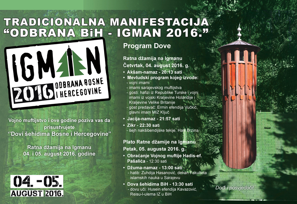 Predstavnici Organizacionog odbora manifestacije „Odbrana BiH – Igman 2016“, koja se ove godine 16. put po redu održava krajem prve sedmice augusta mjeseca na planini Igman, najavili su veliki broj različitih aktivnosti u kojima će po prvi put organizovano učestvovati i prisustvovati predstavnici boračkih kategorija iz nekadašnjih zona odgovornosti svih korpusa Armije Republike Bosne i Hercegovine, prenosi bh. novinska agencija Patria.