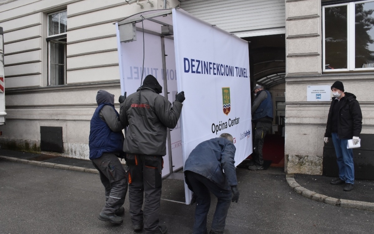 U predulazu Općine Centar postavljen dezinfikacioni tunel