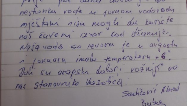 Foto: Dio teksta:Ovo pitaju mještani Kasatića nakon što im je Zavod za javno zdravstvo Kantona Sarajevo , 28.6. 2019. godine, dostavio Izvještaj o mikrobiološkom ispitivanju vode, gdje stoji da im je voda na prirodnom izvorištu zagađena…