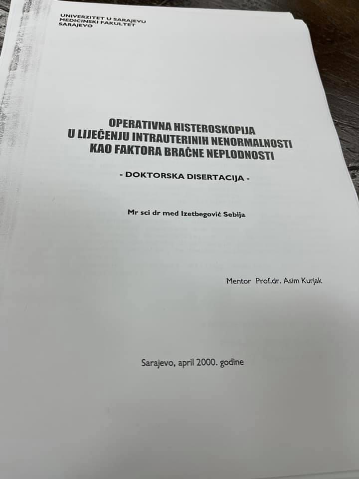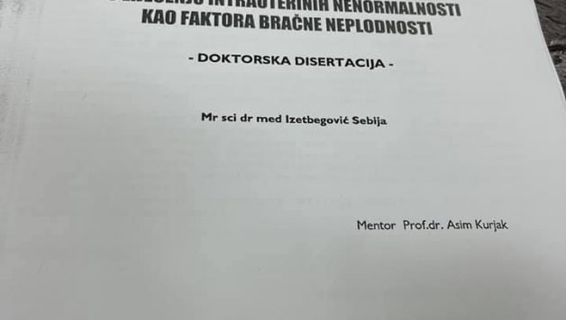 Novinska agencija Patria u posjedu je nekoliko strana doktorske disertacije dr. Izetbegović gdje se navodi da joj je mentor Asim Kurjak.