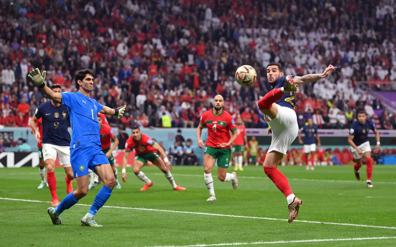 Theo Hernandez je udario Boufala, a nije se aktivirao ni VAR. Pet minuta prije kraja Giroud ponovo u šansi, ovaj put je loše šutirao. Do kraja prvog dijela vrijedi izdvojiti i šansu za El Yamiqa, ali Lloris je potvrdio golmansku klasu.