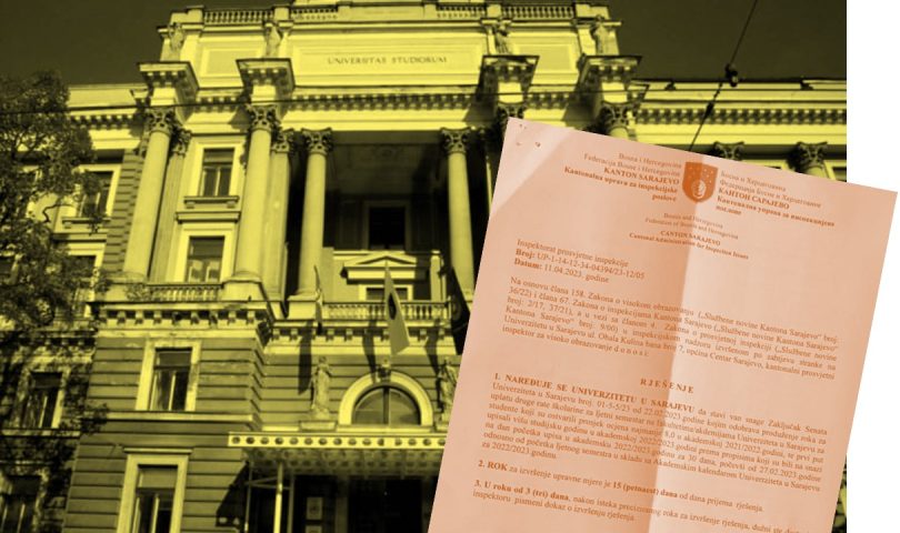 Prosvjetna inspekcija Kantonalne uprave za inspekcijske poslove KS donijela je rješenje kojim se naređuje Univerzitetu u Sarajevu da stavi van snage Zaključak Senata kojim odobrava produženje roka za uplatu druge rate školarine za ljetni semestar na fakultetima UNSA-e za studente koji su ostvarili prosjek ocjena najmanje 8,0 u akademskoj 2021/2022. godini, te prvi put upisali višu studijsku godinu u akademskoj 2022/2023.