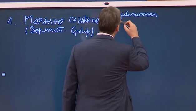 “Čuli smo bezbroj puta da se Srbija militarizuju i da se priprema na rat i da je pitanje trenutka kada će Putin izdati naredbu svom potrčku da krene u napad. I važno je moralno sakaćenje Srbije odnosno verhmahtizacija Srbije. To je prva tačka.