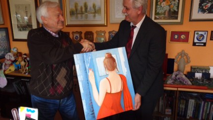 Na slici: Bužo prilikom uručenja slika generalu Divjaku Sva sredstva od umjetničkih slika koja se budu sutra prodala na izložbi u Beču Enver Bužo, koji više od 20 godina živi i radi u Holandiji, ...
