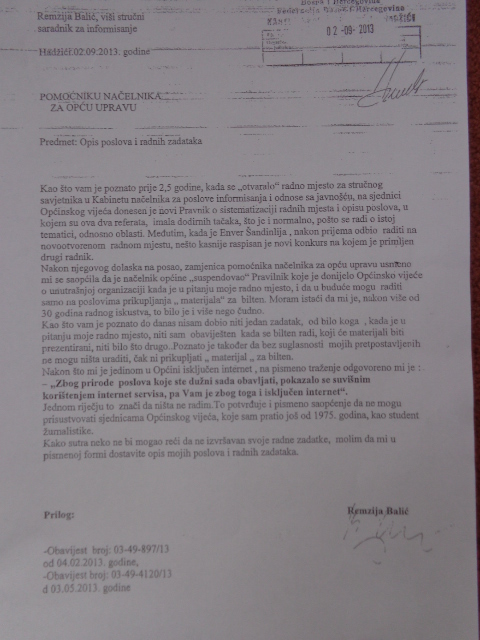 Ali nakon izdavanja knjige sve prijetnje i navoda iz anonimnih pisama počeli su se realizirati. Prvo nisam dobio usmeno obećan novac za izdavanje knjige.Nedugo zatim meni je jedinom u općini isključen internet pod izgovorom da se štedi.03.05.2013. godine Enes Kazić, zamjenik načelnika Općine, koji je ujedno i pomoćnih načelnika za oblast društvenih djelatnosti, koji je također ranije bio policajac, zabranio je da prisustvujem sjednicama Vijeća.Ovo je prvi put od 1975. godine, kada sam još kao student žurnalistike pratio sjednice Opićnskog vijeća i druge događaje iz općine Hadžići. Nisam mogao ništa da radim , samo sam sjedio u kancelariji. Tražio sam da mi se dostavi opis mojih poslova i radnih zadataka, koje nisam dobio.