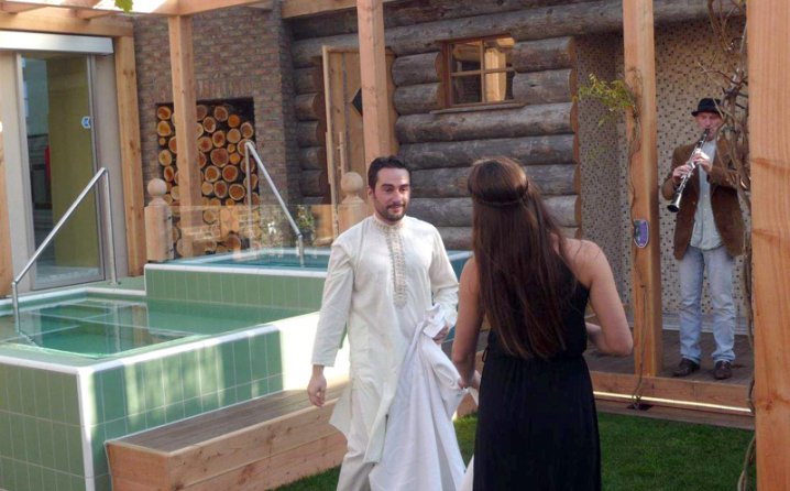 U bašti prostranog kupatila Samir je zasadio jorgovan i jasmin, jer su bosanske bašte, kako kaže, nezamislive bez tog cvijeća. A Šantićevom “Eminom”, uz mali performans na oduševljenje gostiju, pokazao je sjetu za domovinom.