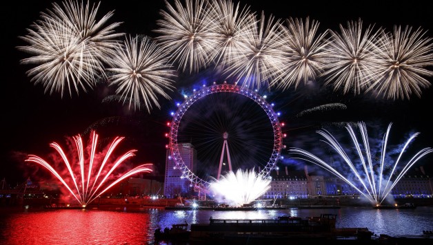 Nebo iznad Londona tačno u ponoć je bilo obasjano spektakularnim vatrometom i svjetlosnim efektima.