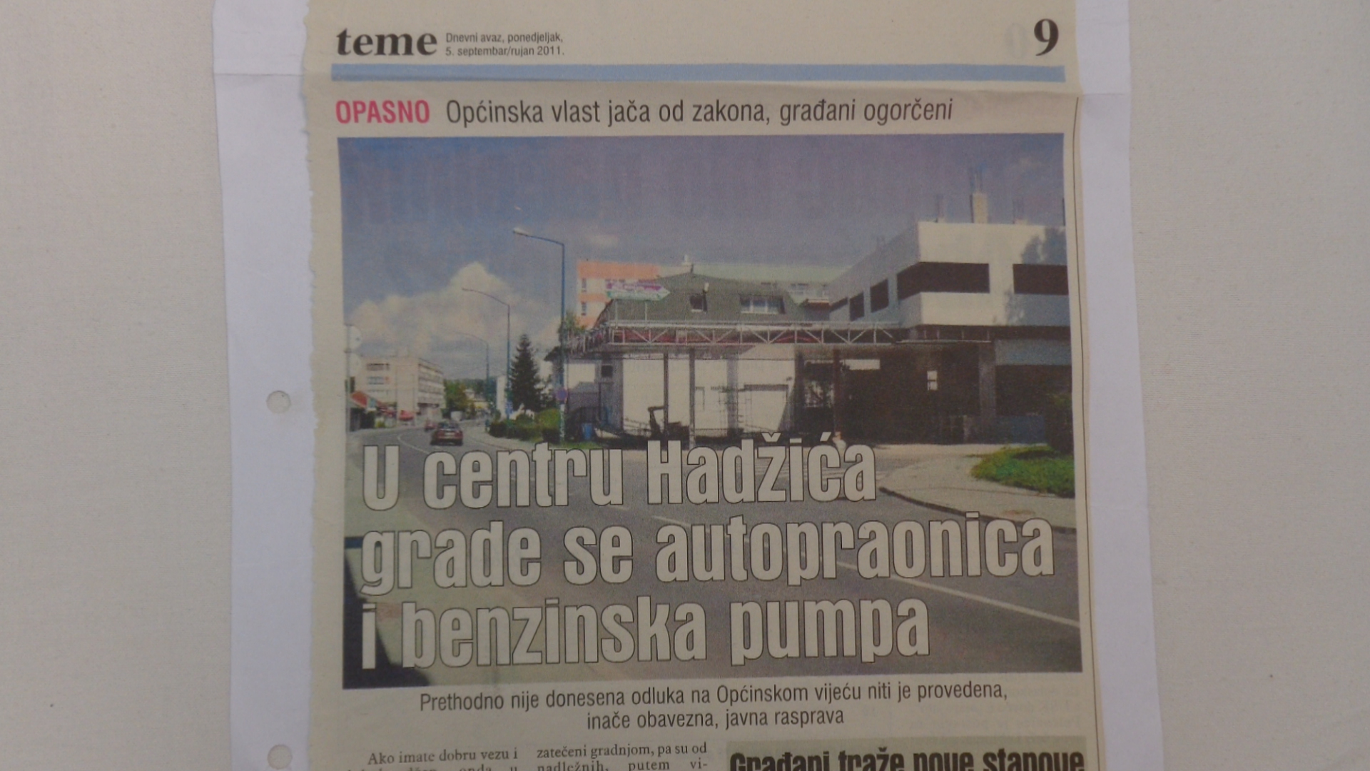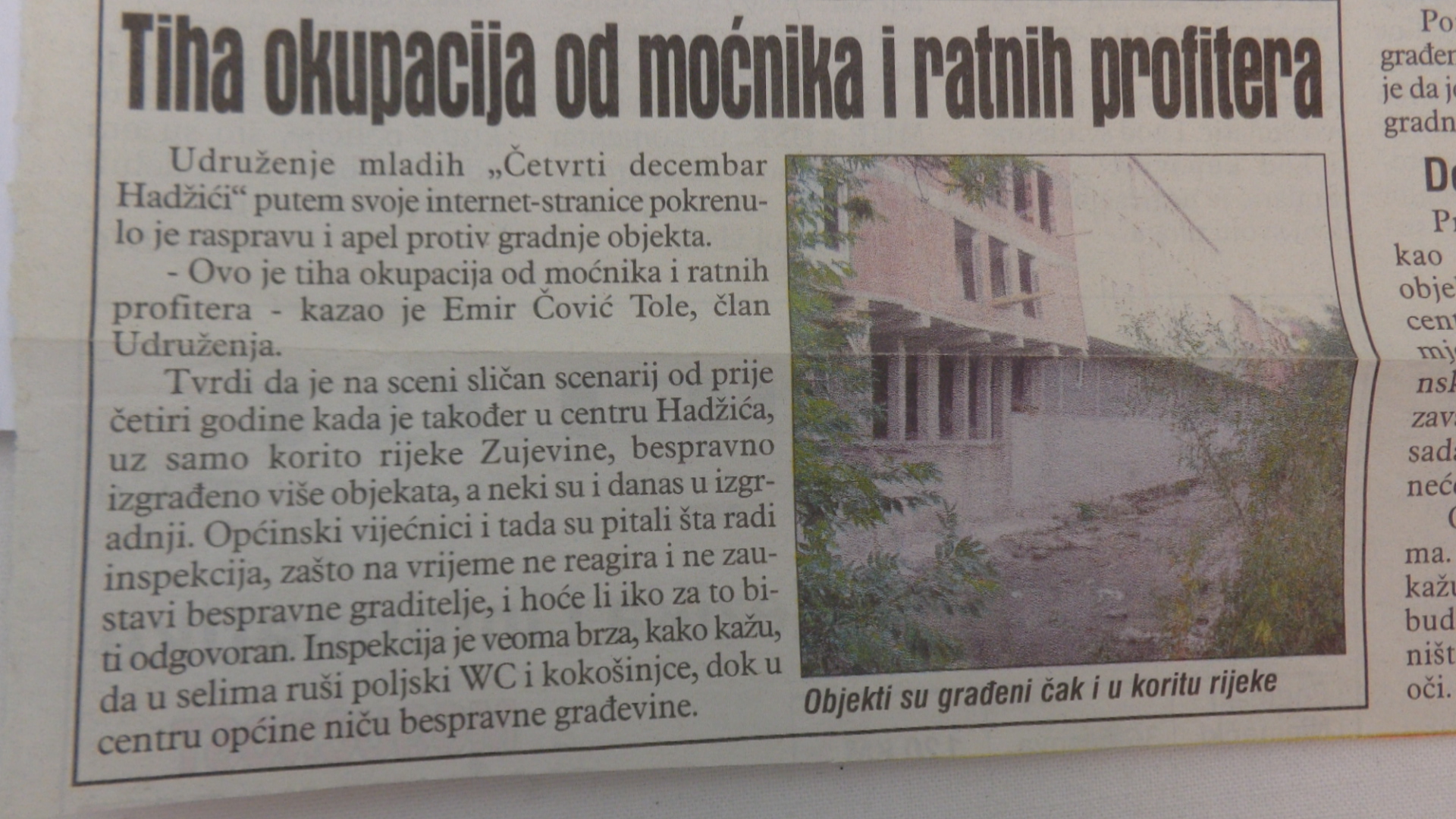 Dok su u selima inspektori rušili šupe i kokošinjce dotle su dozvolili da se u rijeci Zujevini bespravno, suprotno RP, sagrade objekti. Kasnije je to na Vijeću, promjenom regulacionog plana, i legalizovano. Tadašnji građevinski inspektori brzo su nagrađeni za savjetnike načelnika općine Hamde Ejubovića. U centra Hadžića mimo regulacionog plana, javne rasprave, odluke Općinskog vijeća, i drugih obavezujućih odluka , između dvije najveće stabmene zgrade, sagrađena je benzinska pumpa i autopraonica.