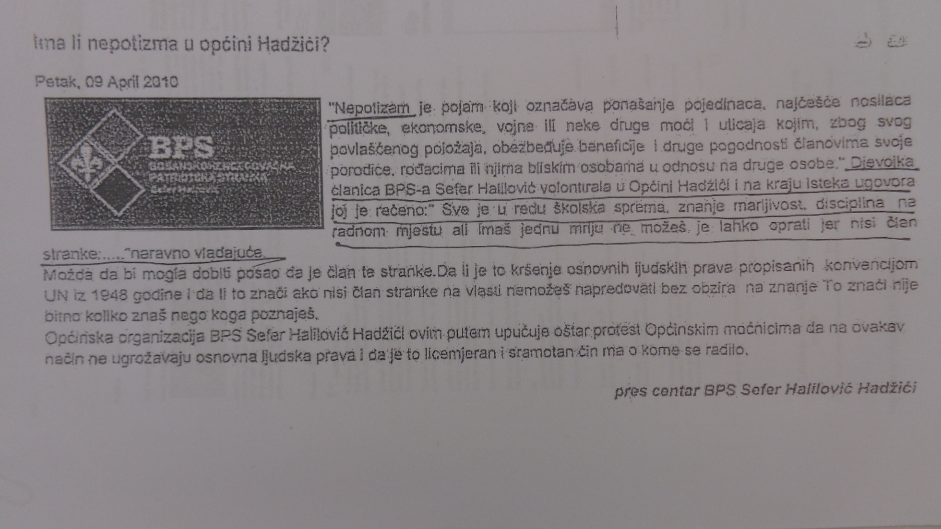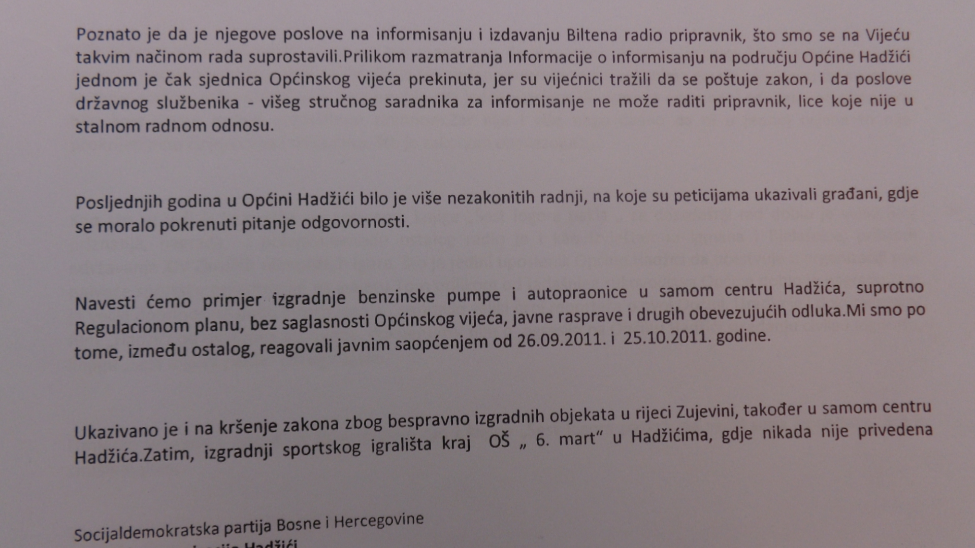 U povodu toga SDP i pismeno je izrazio protest na takav načinu rada nadležnih u općini Hadžići i Baliću dali podršku za rješavanju spora sudskim putem.