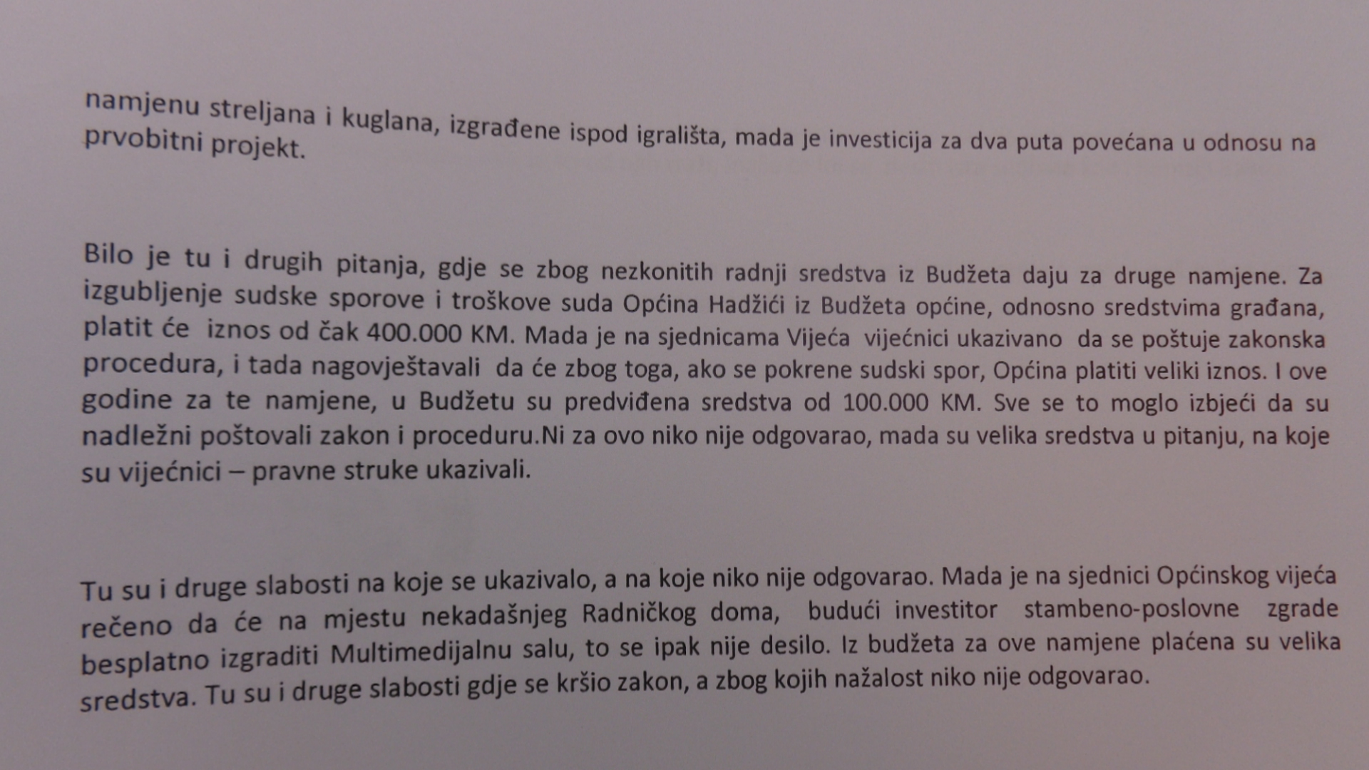 (2 )Općina Hadžići: Za promašene investicije niko ne odgovara, a kažnjavaju se nestranački kadrovi