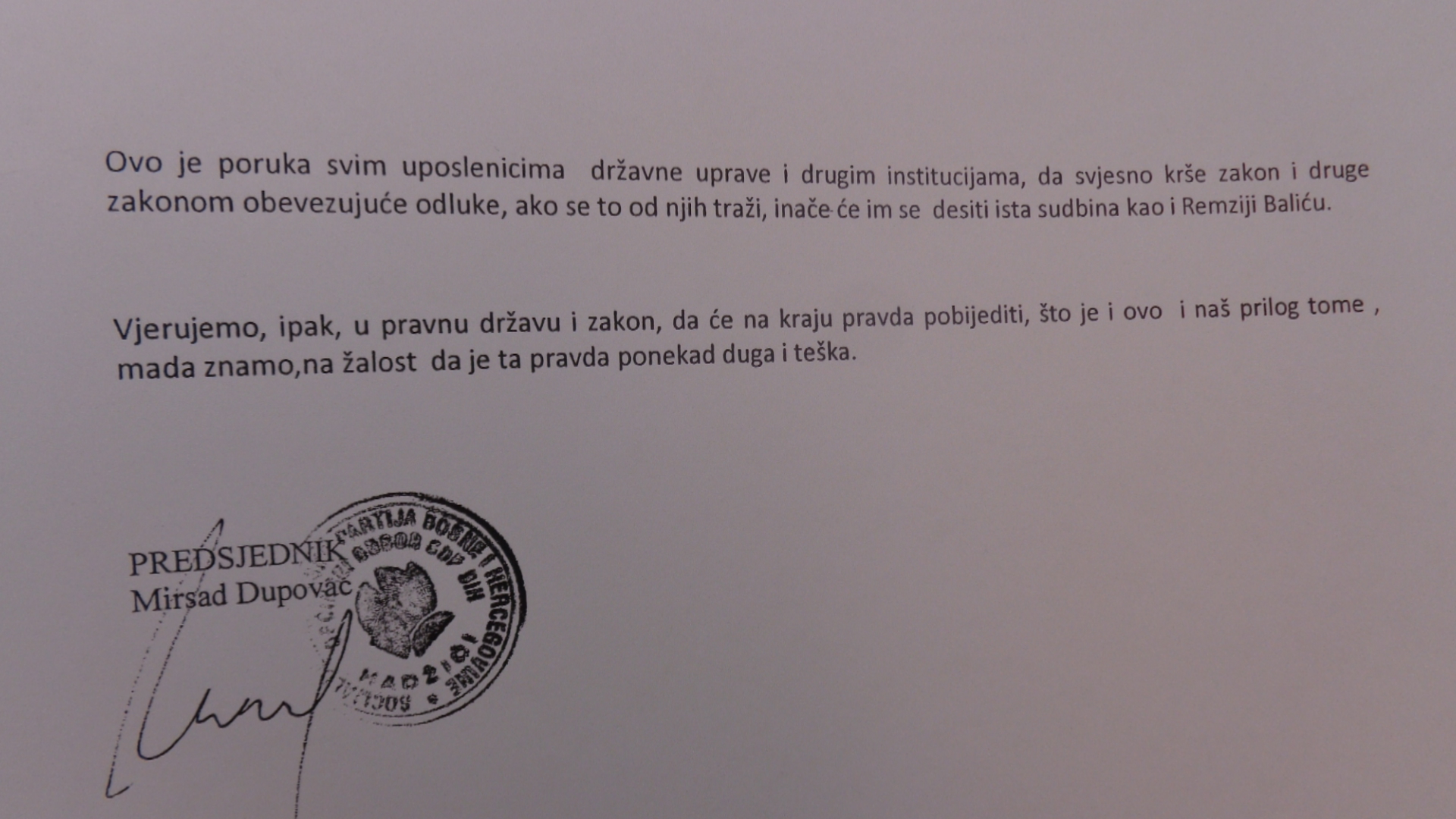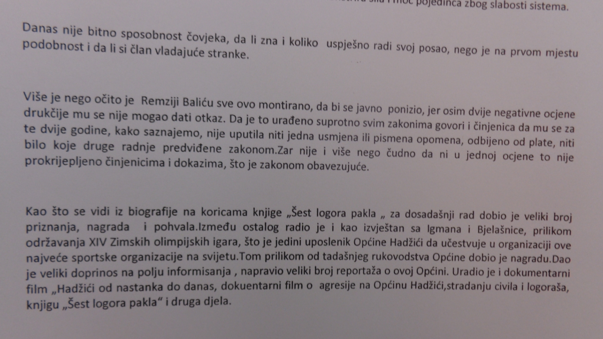 Ovakvim postupkom načelnik Općine Hadžići uputio je jasnu poruku svim zaposlenim da moraju i kršiti zakon ako se to od njih traži, jer će ih desiti sudbina Balića.