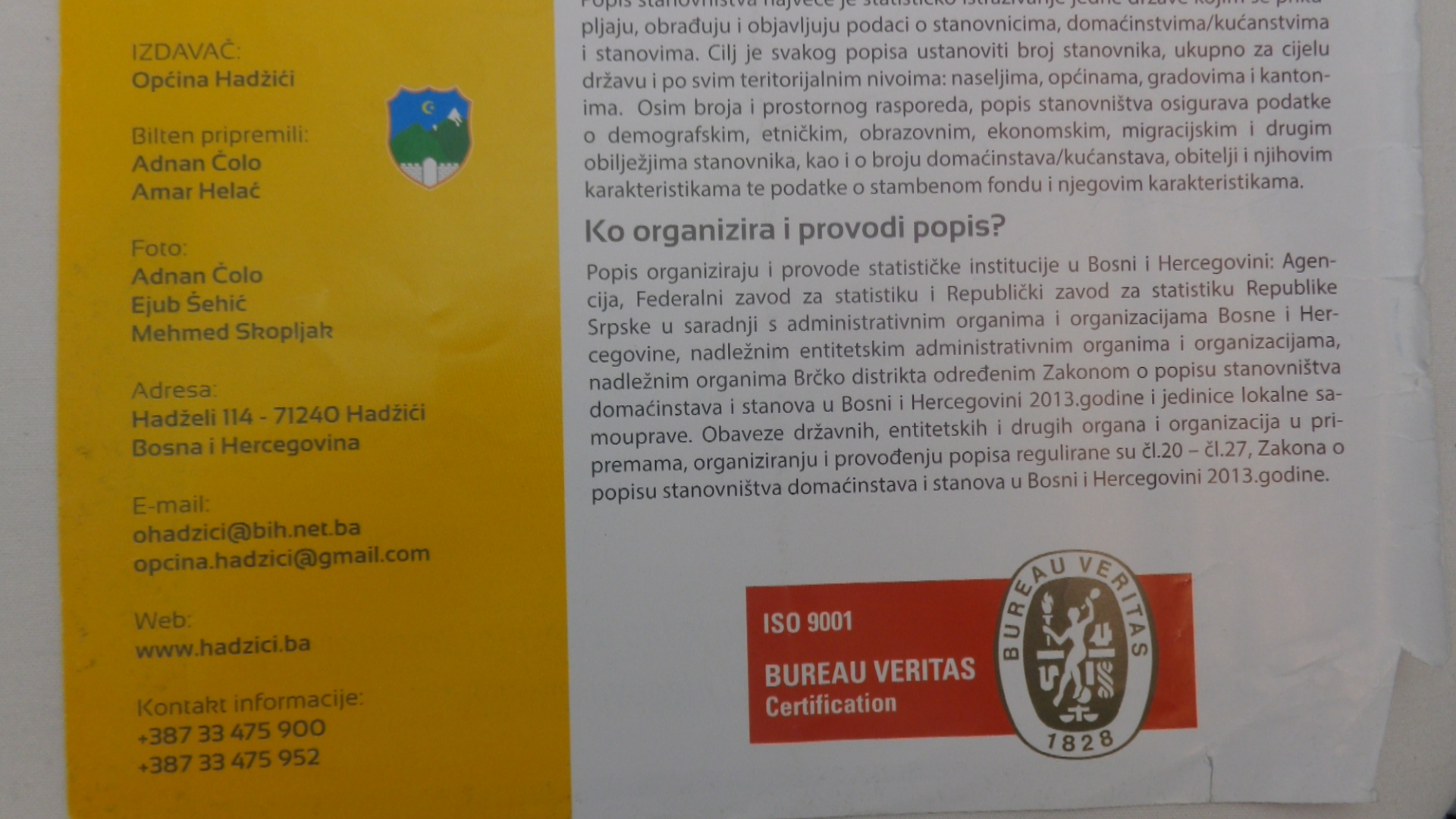 U impresumu Biltena broj 23 pored Čole, uposlenika Općine piše da je Bilten pripremao Amir Izmirlija, koji također ne radi u općini Hadžići, i tako dalje.