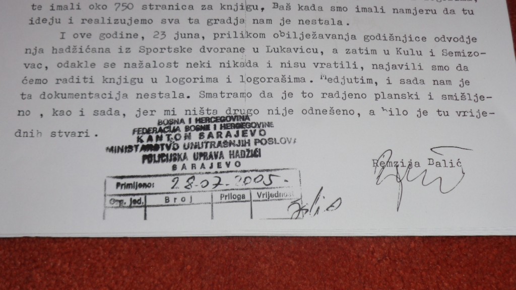 I 2005. godine iz moje kuće, od svih stvari samo je ukradena dokumentacija o zločinima, kasete o snimcima, jer sam planirao napraviti i dokumentarni film, što sam kasnije i realizovao. Zašto nije ukradeno ništa drugo osim dokumentacije. Očito da se radilo planski, što se i danas čini.