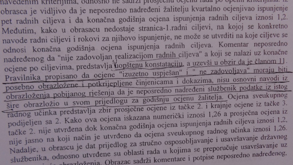 Interesantno je istaći da sam negativnu ocjenu za 2012. dobio mada sam za tu godinu imao čak povećanje plaće za pet odsto za uspješan rad u prethodnom periodu.