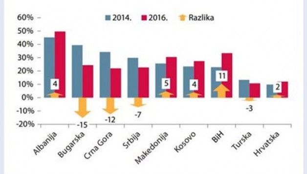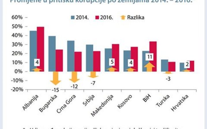 BiH je, prema tome, odmah iza Albanije, a ispred Makedonije po nivou korupcije. Slijede Kosovo, Bugarska, Srbija, Crna Gora, Turska i Hrvatska, gdje je pritisak korupcije najniži.