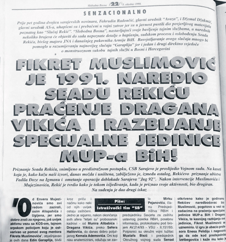 FELJTON O POLITIČKIM UBISTVIMA Senzacionalna priča “Slobodne Bosne” iz oktobra 1998. godine – serijal o priznanju Seada Rekića (176)
