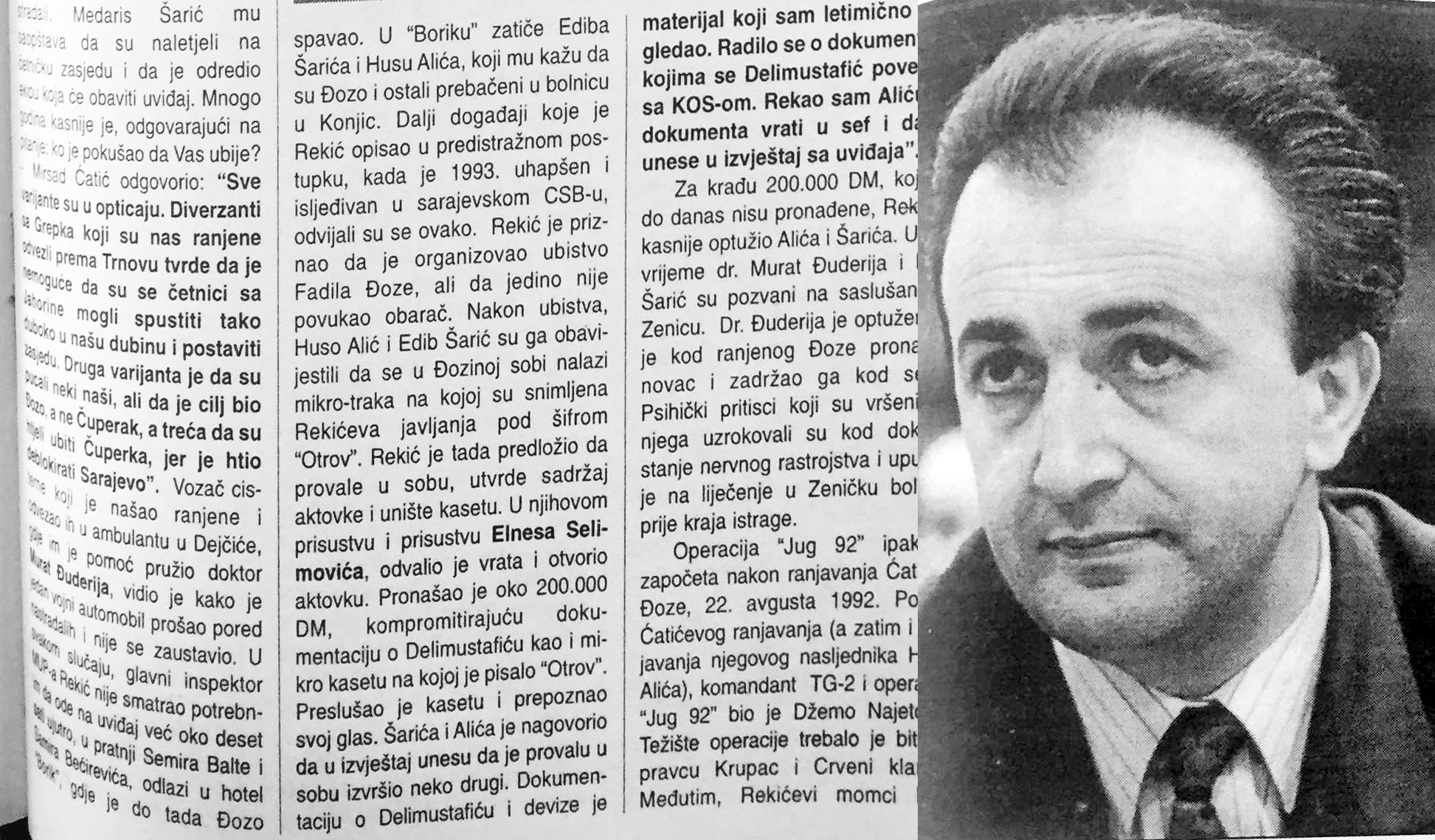 Daljnji događaji koje je Rekić opisao u predistražnom postupku, kada je 1993. uhapšen i isljeđivan u sarajevskom CSB-u, odvijali su se ovako. Rekić je priznao da je organizovao ubistvo Fadila Đoze, ali da jedino nije povukao obarač – objašnjava se u tekstu SB-a od 17. oktobra 1998. godine.