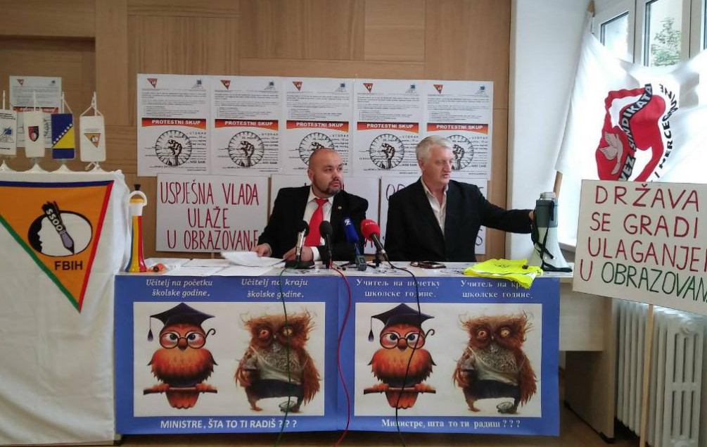 Želimo da ukažemo na loše obrazovanje, a naši zahtjevi su – ukinuti veliku administraciju, da se iz obrazovnog sistema izbace nepotrebni sadržaji, da se provede kurikularna reforma, da se potpuno zaustave mjere štednje i donesu pedagoški standardi koji će biti osnova za kvalitetan obrazovni sistem i kvalitetnu nastavu – izjavio je predsjednik Sindikata OOO KS Saudin Sivro.