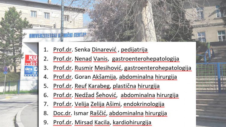Spisak ljekara koji su napustili Klinički centar Univerziteta u Sarajevu u vrijeme mandata dr. Sebije Izetbegović.