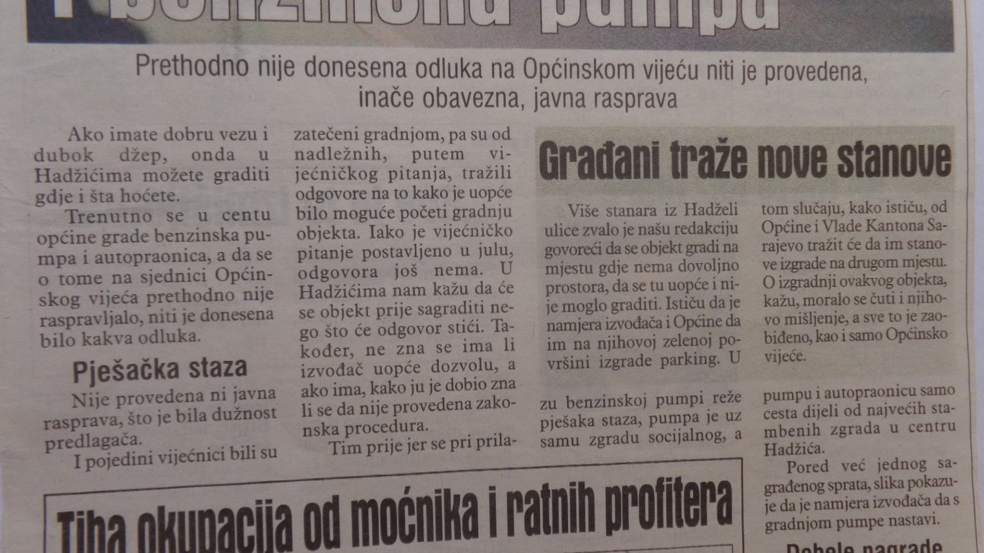 Zašto nadležni u Općini Hadžiću tužbe nisu ni podnijeli ?