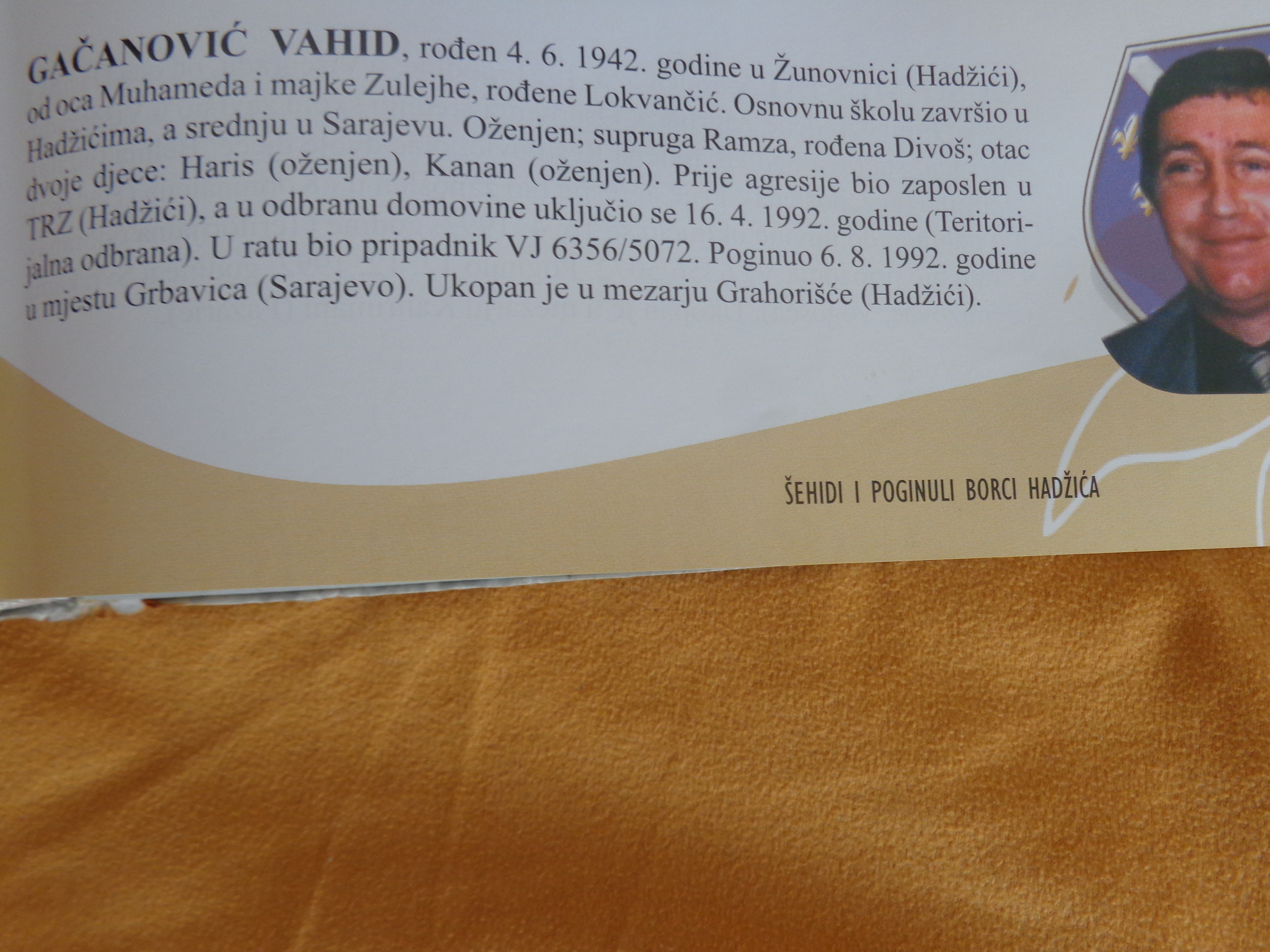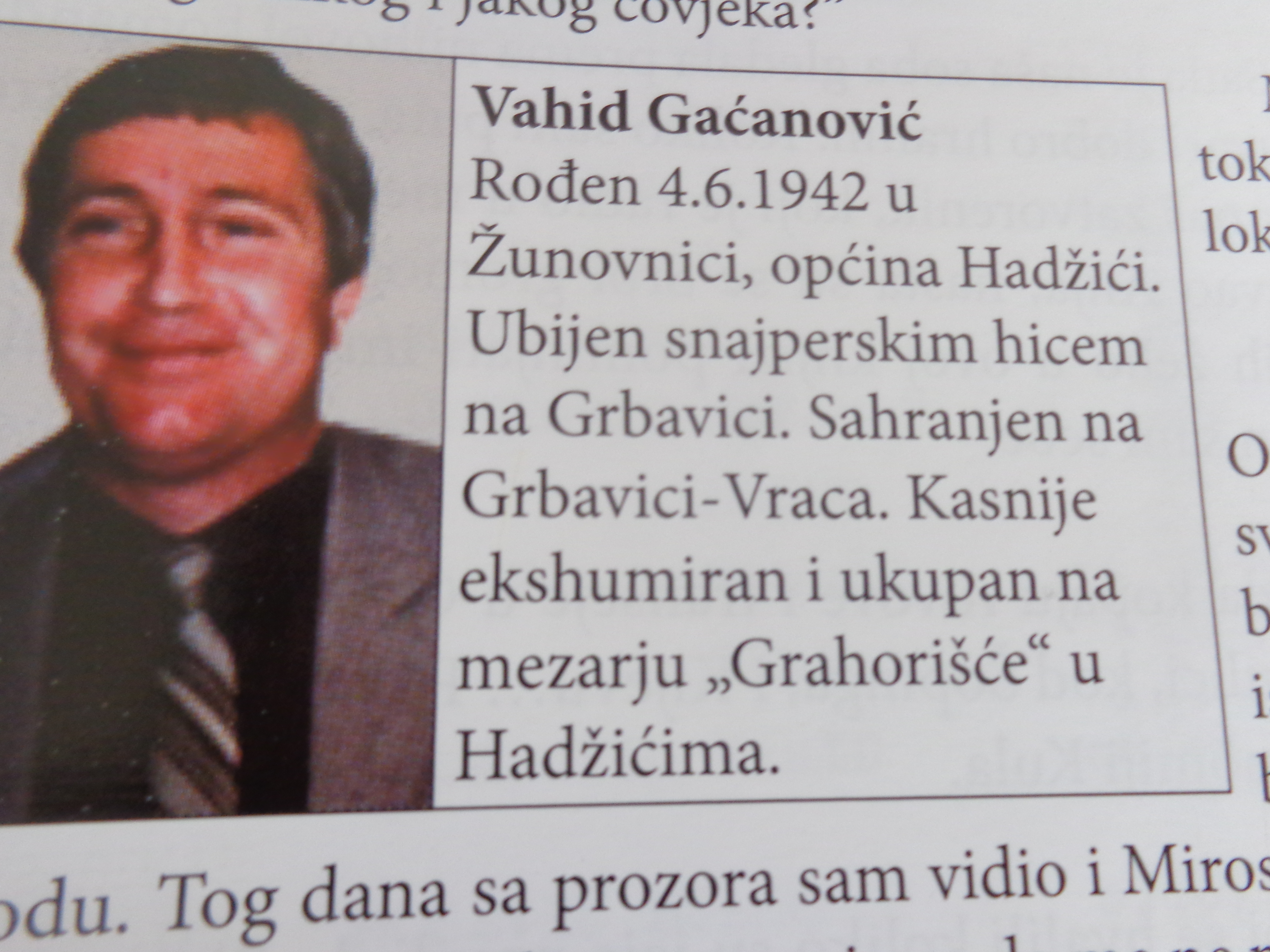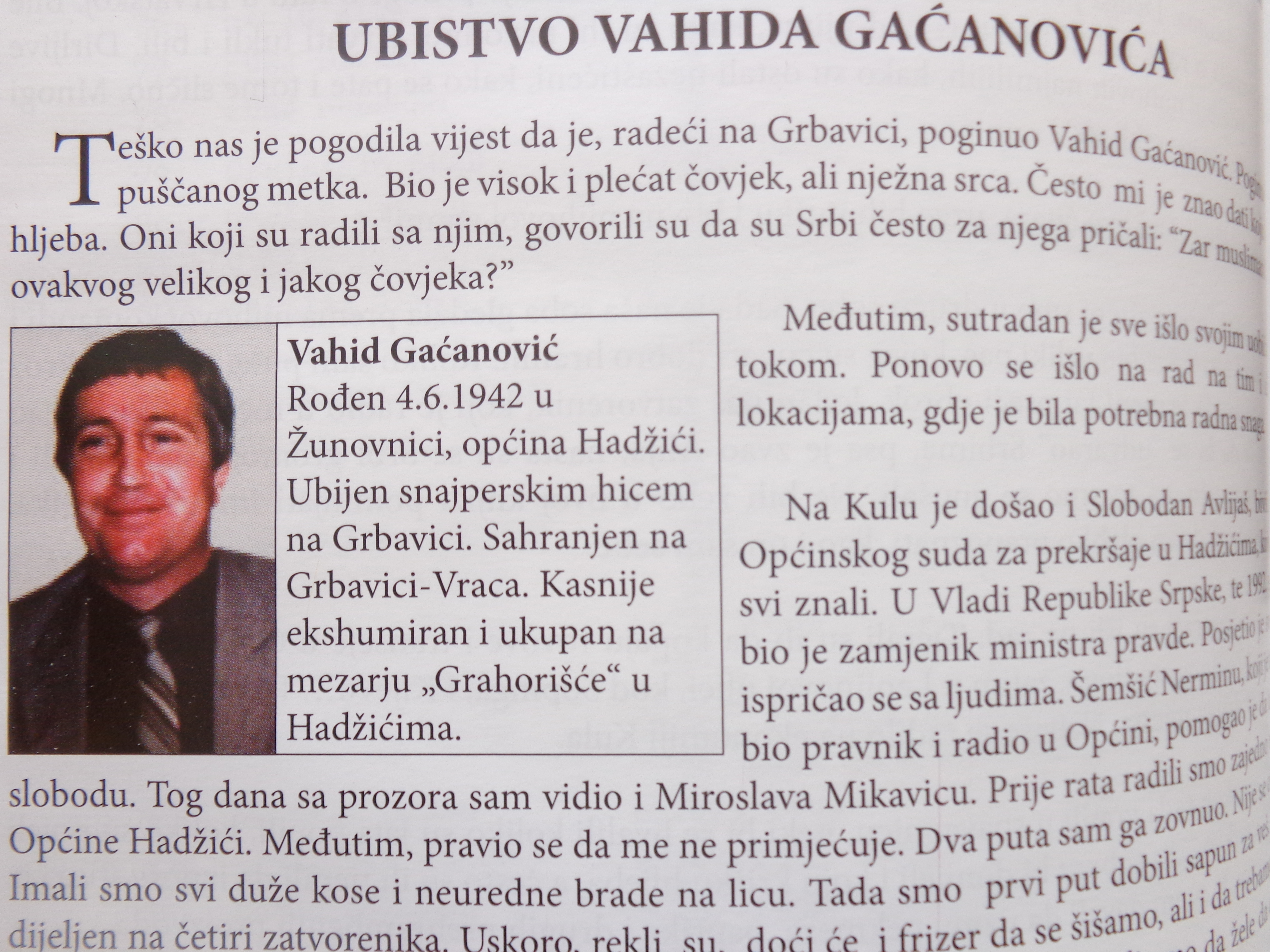 Piše da je Vahid Gačanović, poginuo na Grbavici, što je velika laž. I ponovo pitanje:Zašto se prekraja historja, zašto se brani zločine sa druge strane, po čijoj naredbi se to radi.