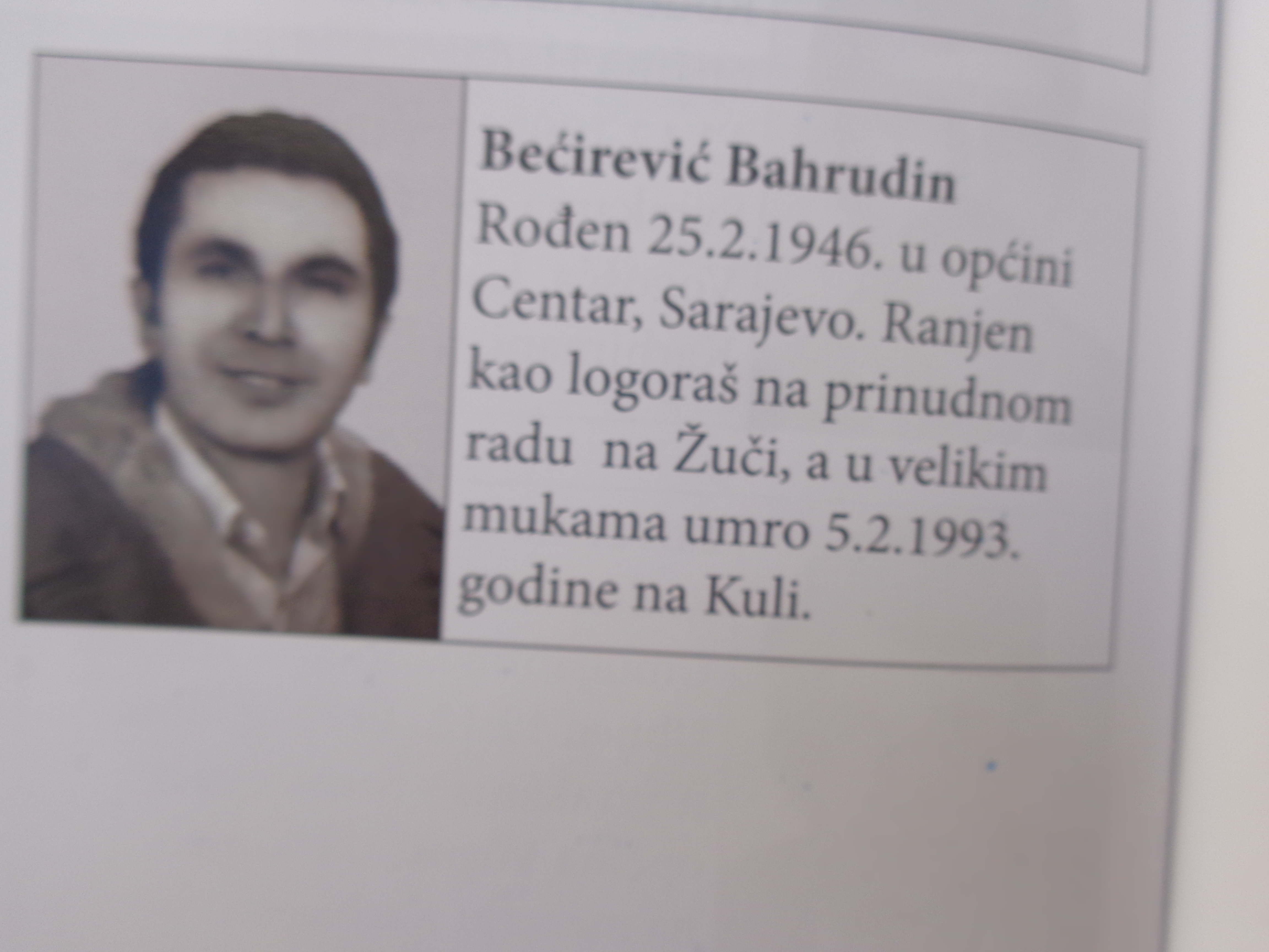RANJEN NA PRINUDNOM RADU NA ŽUČI, UMJESTO U BOLNICU PREBAČEN U LOGOR KULA, UMRO U VELIKIM MUKAMA, A U KNJIZI VAHIDA ALAĐUZA PIŠE DA JE POGINUO