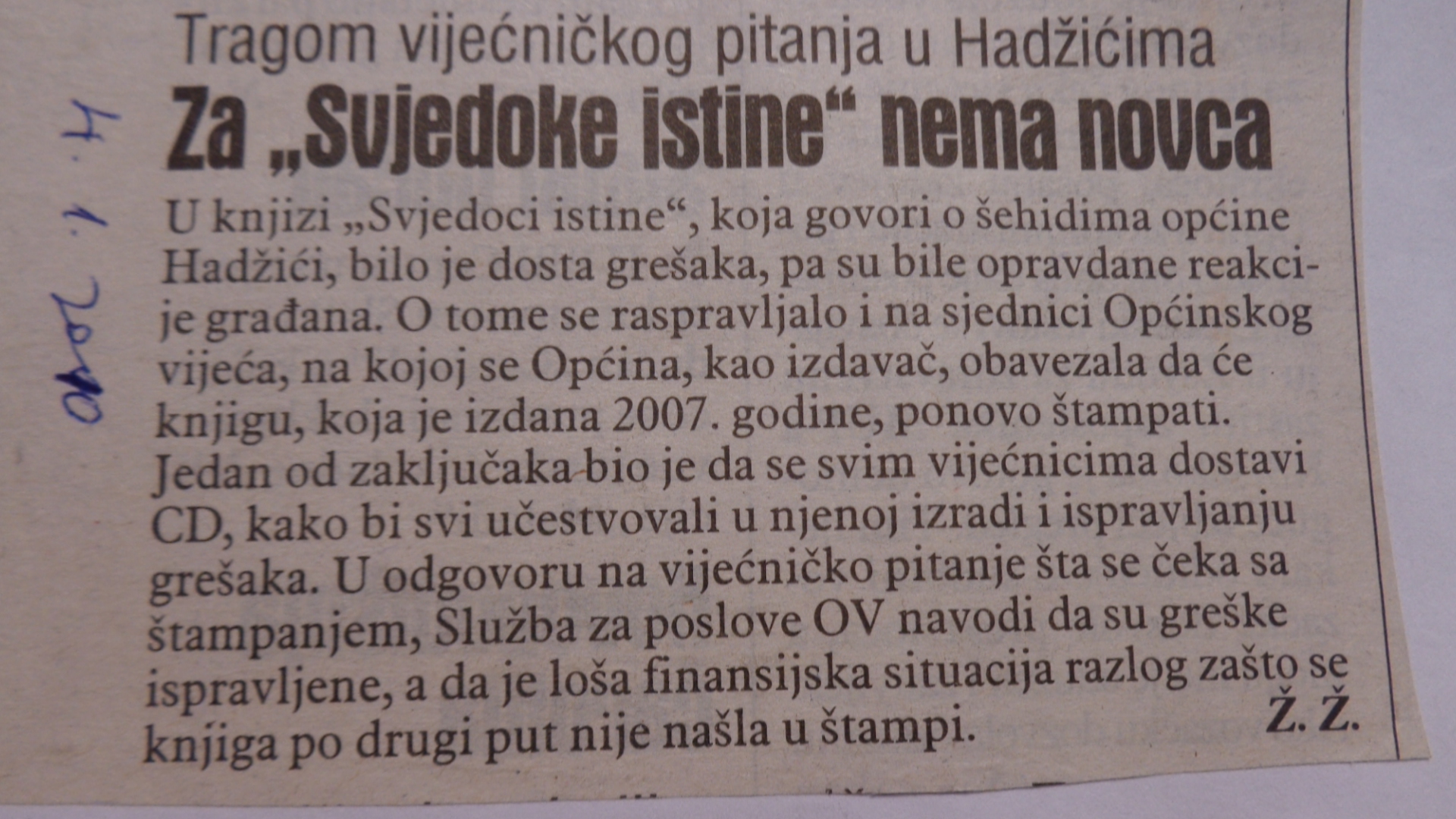 Kome i zašto u Hadžićima smeta istina.., po čijem upustvu se radi, zašto se za godina 11 godina ne isprave greške iz knjige „Svjedoci istine“, koju je izdala općina Hadžići, a koja brani drugu stranu ?