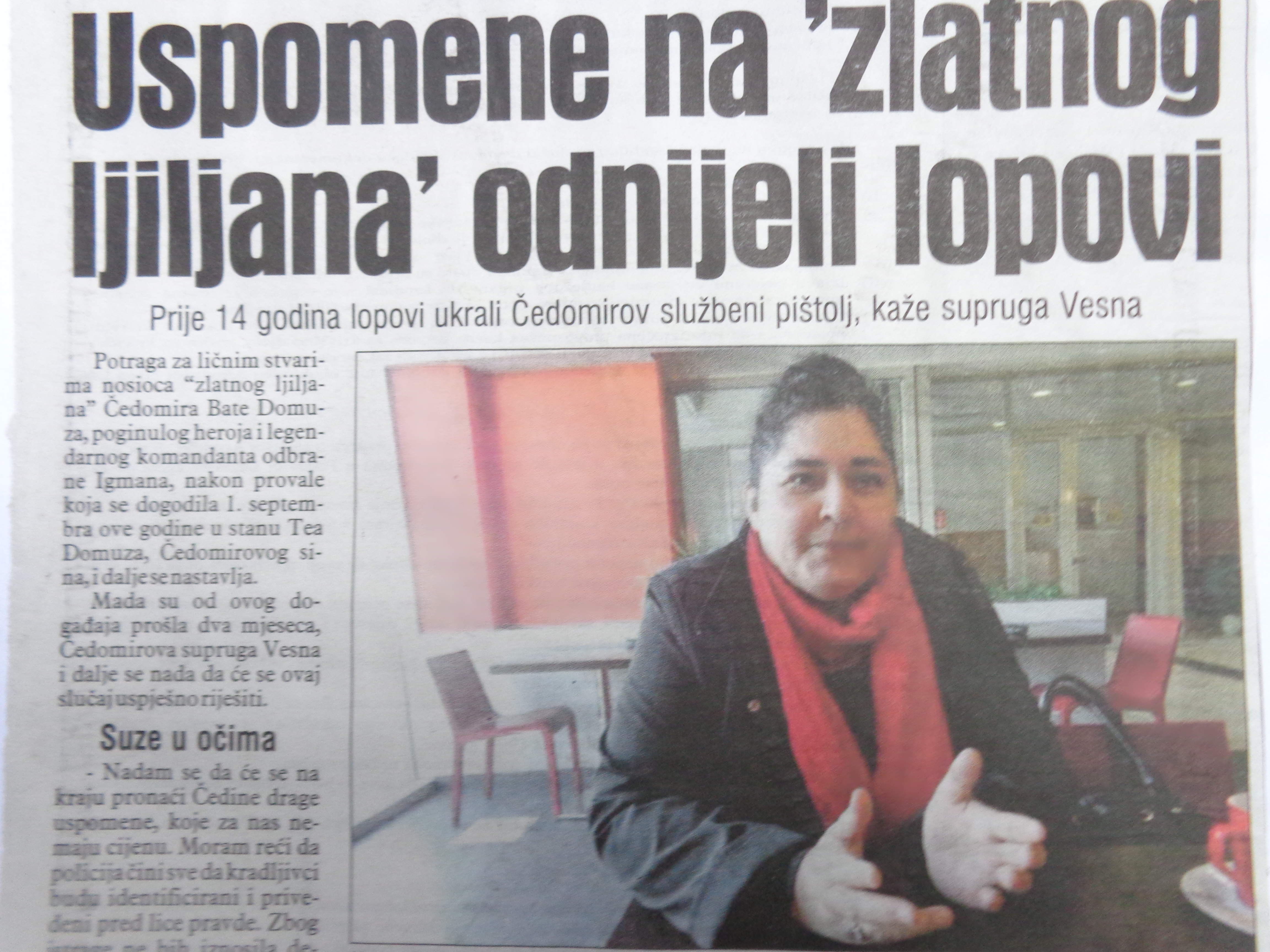 Porodici Domuz iz policije su sugerisali da obiđe zlatarske radnje,da li je neko donosio i prodao predmete od zlata, pošto su bili specifične prirode i lako ih je prepoznati. Sve u cilju kako bi se otkrili lopovi i pronašli stavri koji su pripadali legandarnom komandantu. . O tome je , u saradnji sa porodicom Domuz ,Balić pisao i očito je nekome debelo zasmetalo.