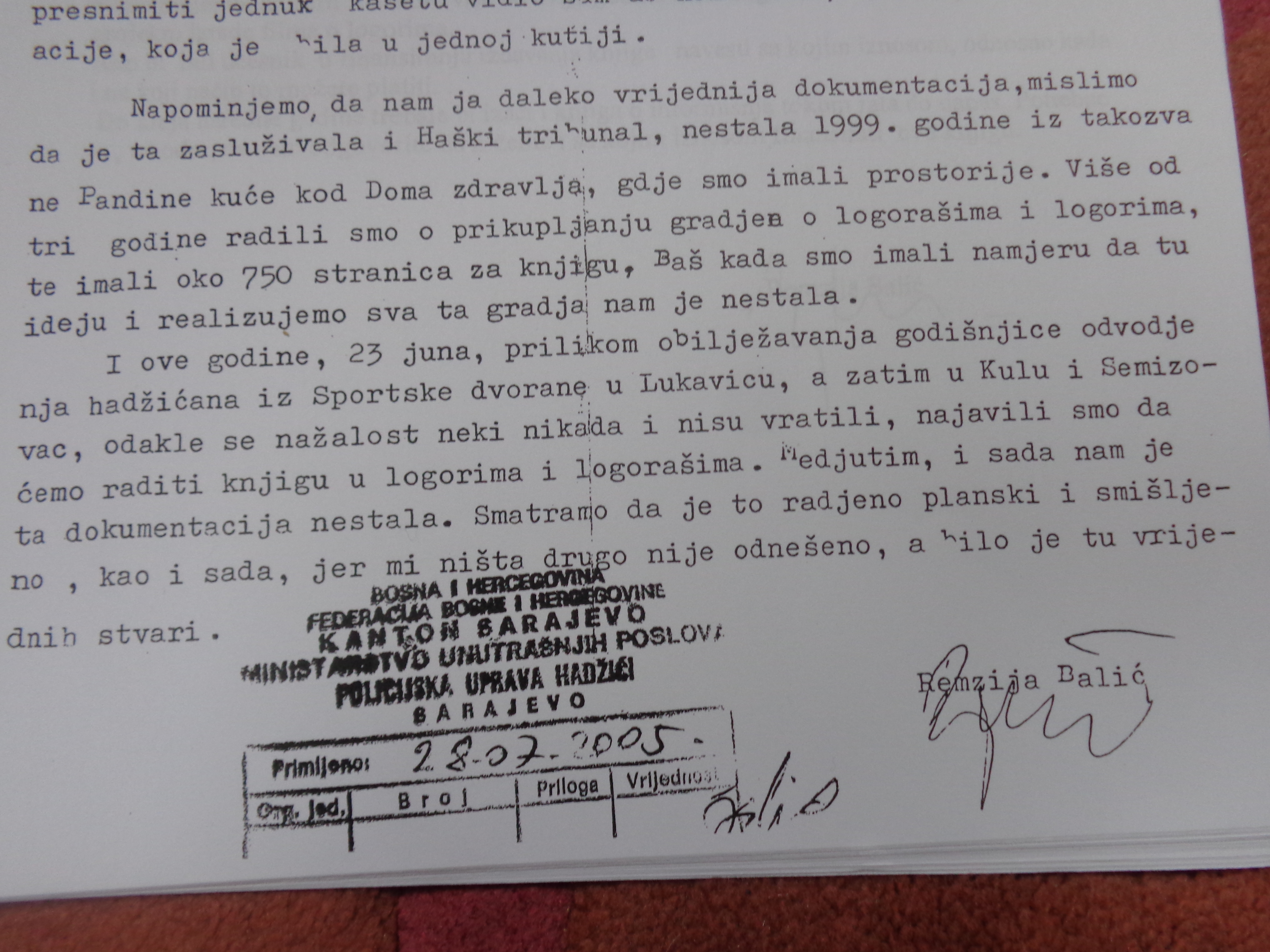 Drugi put, u julu 2005.godine, iz njegovog stana.Prije toga Balić je prilikom obilježavanja dana, kada su logoraši iz Hadžića prebačeni u Lukavici, najavio da se piše knjiga o logorima i logorašima.