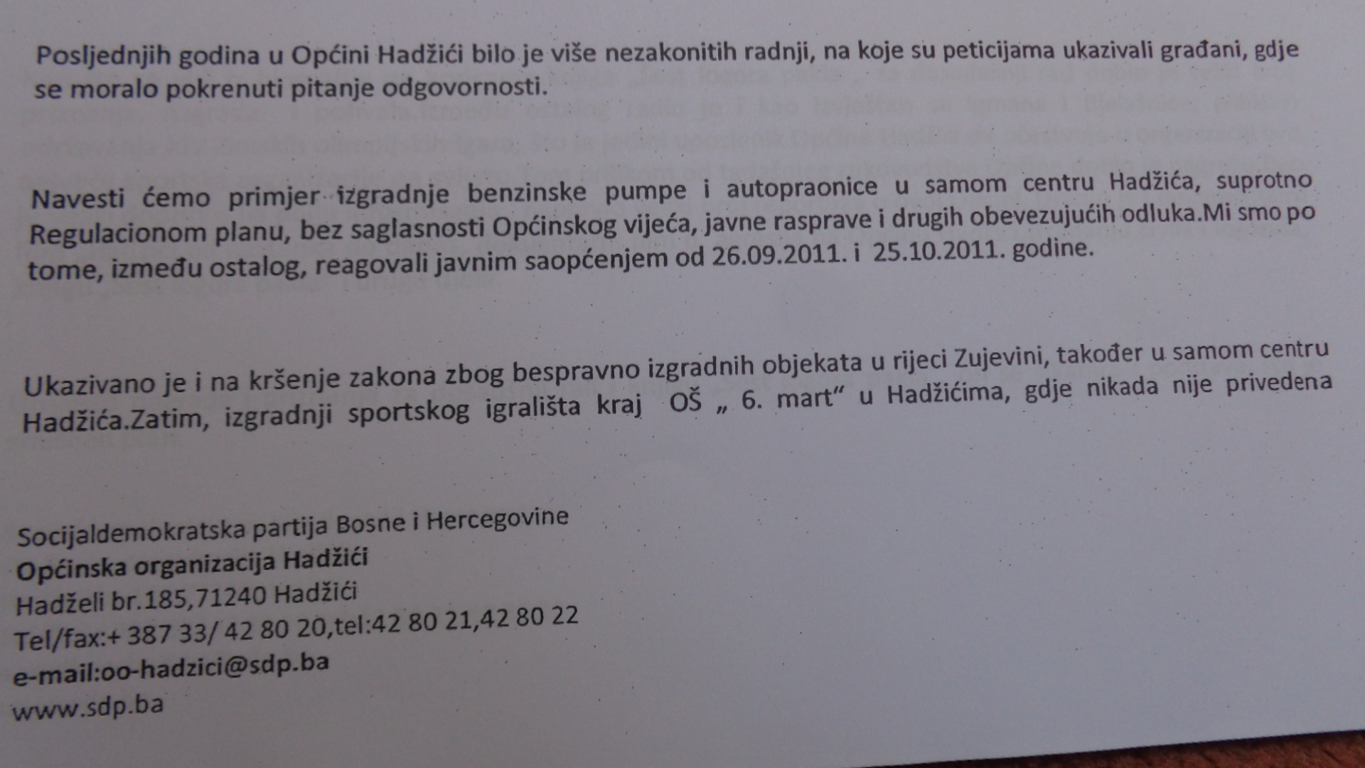 I ponovo pitanje kome i zašto u općini Hadžići smeta istina? Po čijem naređenu se radi?
