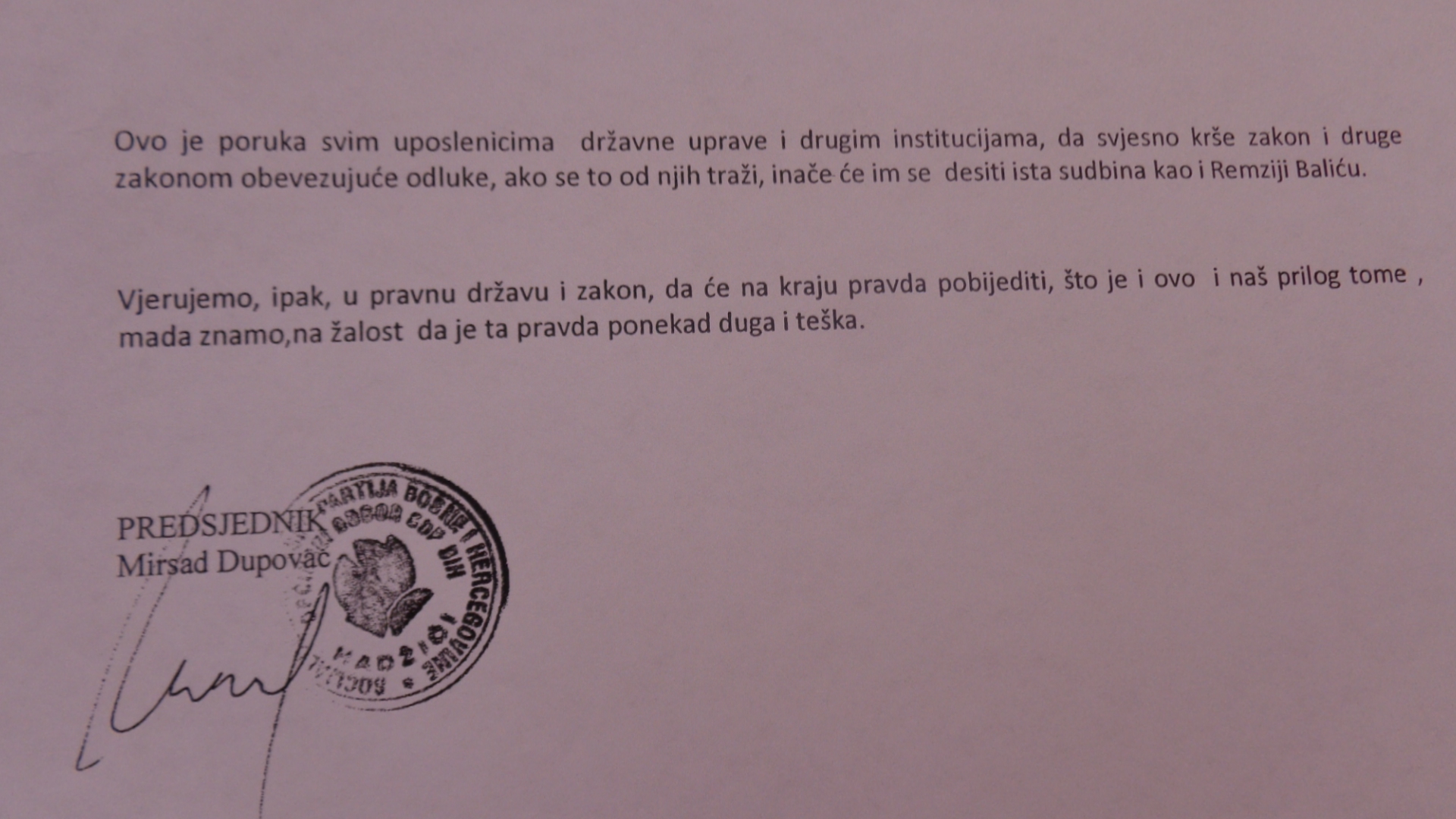 Zbog čega je Balić dobivao prijetnje da je ne smije izdati?Da će, ako to učini osjećati posljedice do kraja života, biti prebačen na drugo radno mjesto izvan zgrade općine, istjeran s posla, da se tu više nikada neće vratiti, da zaboravi vrata općine…