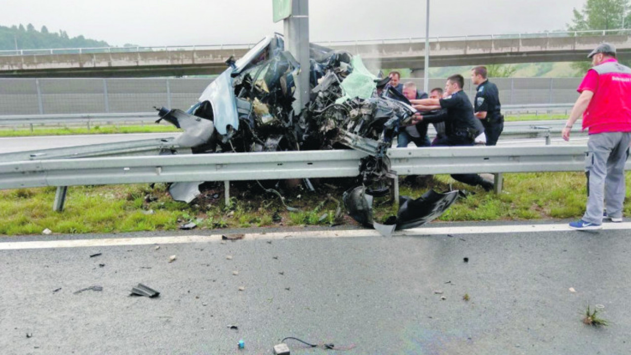 Tom prilikom došlo je do destabilizacije vozila i gubitka kontrole nad vozilom i naleta lijevom bočnom stranom vozila na saobraćajni znak koji označava razdvajanje kolovoza, potom na zaštitnu metalnu ogradu u dužini od oko 15 metara, a potom i udara lijevom bočnom stranom vozila na metalni stub.