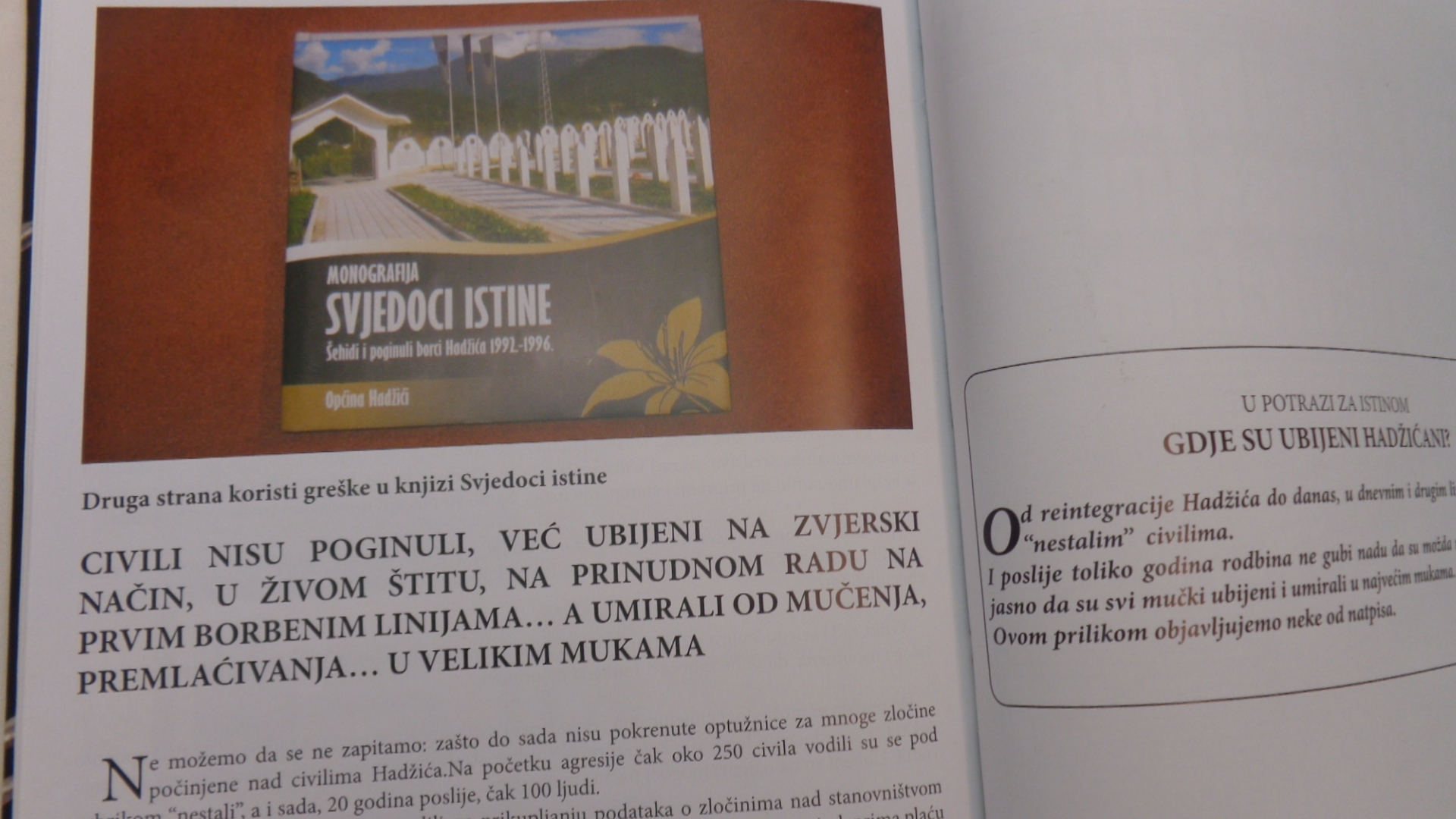 Zato nije čudno što druga strani hvali tu knjigu, koju su poslali u Hag, koju su, kako su javno iznosili, napisali „pošteni Muslimani“,da iza pomenute knjige stoje nadležne institucije, boračke organizacije općine Hadžići…, da knjiga kazuje „ istinu“, donosi „ pomirenje“….