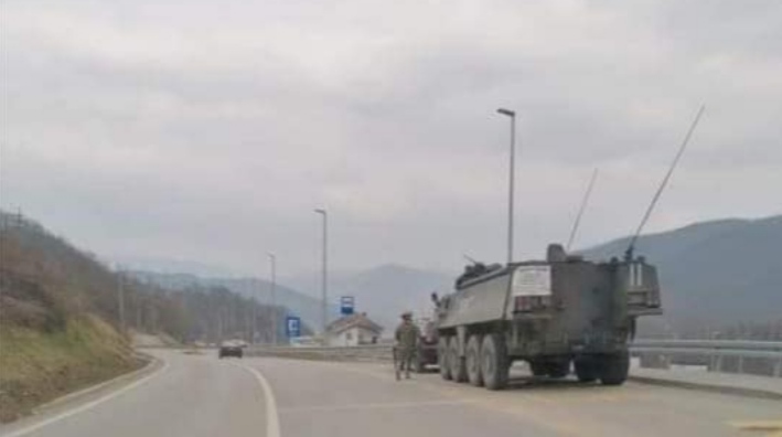 Iz BPK Goražde stižu fotografije sa kružnog toka u naselju Vitkovići gdje je stajalo jedno od vojnih vozila EUFOR-a, tačnije transportner.