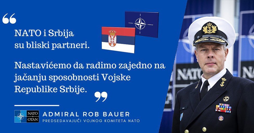 Jer, kako da mi u BiH, Crnoj Gori, na Kosovu objasnimo sebi rečenice Admirala Roberta Bauera, najvišeg vojnog oficira NATO-a i predsjedavajućeg Vojnog komiteta NATO-a, koji kaže da poštuje vojnu neutralnost Srbije, da NATO radi i pomaže Srbiji na razvijanju snaga za odgovor na sajber napade.
