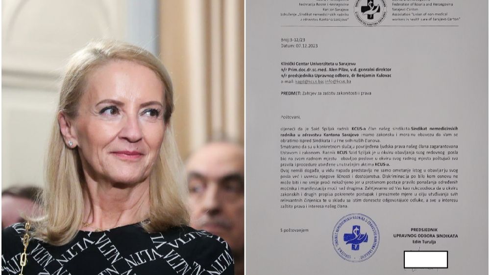 Predsjednik Upravnog odbora sindikata Edin Turulja uputio je pismo v.d. direktora Alenu Pilavu i predsjedniku Upravnog odbora KCUS-a Benjaminu Kulovcu, gdje navode da su prava njihovog člana povrijeđena.
