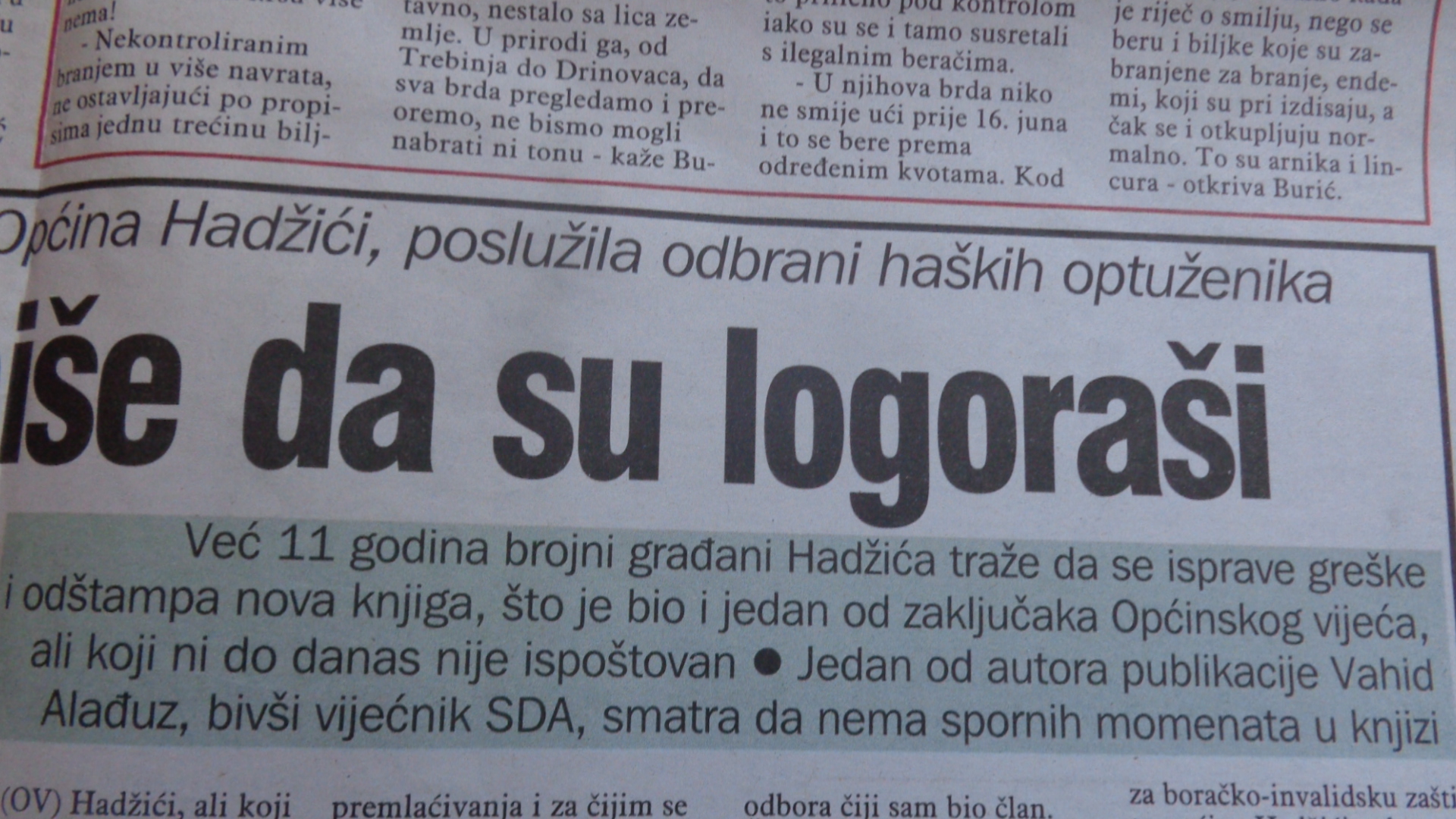 Knjiga općine Hadžići poslata je čak u Hag, ulagana u dokazni materijal , bila i ostala najbolja odbrana za zločince, a nadležni u općini Hadžići neće ni do danas da izdaju drugu, a skoro će 20 godina od izdavanja knjige.