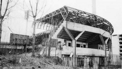 Stadion Grbavica, dom FK Željezničar, zapaljen je 4. maja 1992. godine, a u to vrijeme istoimeno naselje bilo je prva borbena linija pod kontrolom JNA. Zapadna tribina, prenesena sa stadiona “6. april” sa Marijin...