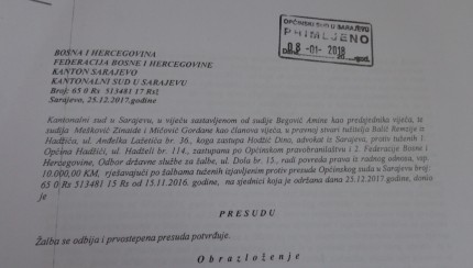 Kantonalni sud u Sarajevu odbio je žalbu Općine Hadžići i Odbora državne službe za žalbu te potvrdio prvostepenu presudu Općinskog suda u Sarajevu kojom su poništena nezakonita rješenja Općine i Odbora prema kojima je...