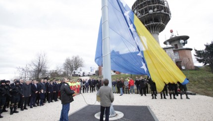 SARAJEVO Na brdu Hum Zastavu su podigli članovi Predsjedništva BiH Šefik Džaferović i Željko Komšić, a prisutna je bila i delegacija Grada Sarajeva Intoniranjem himne i podizanjem zastave jutros je na brdu Hum iznad Sarajeva...